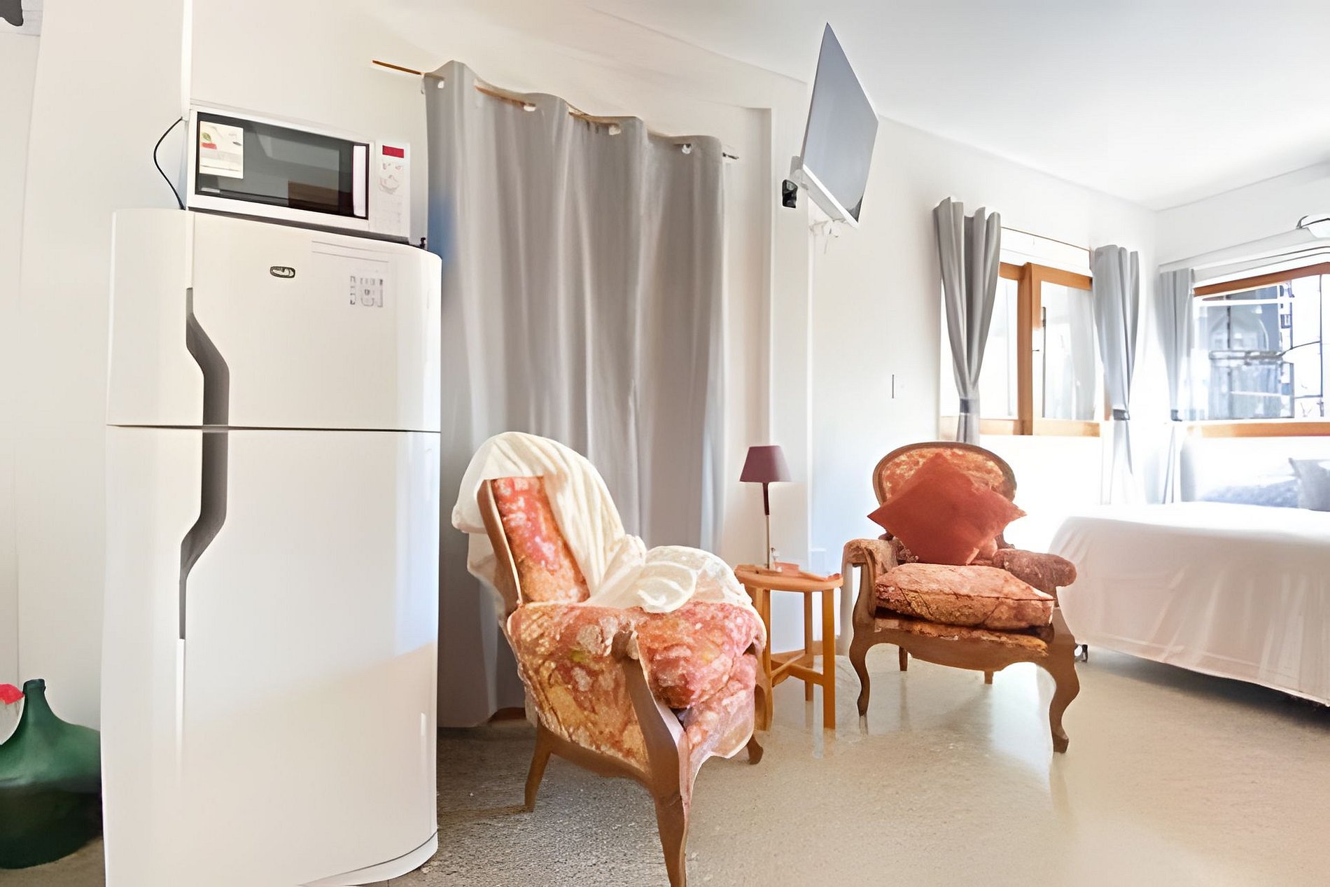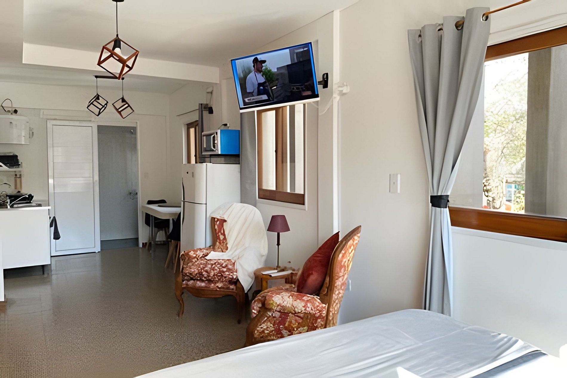 En un solo ambiente todo lo que necesitas, rodeado de ventanales donde ingresa una cálida luz natural y dá a las copas de los arboles al estar situado en un primer piso. Cuenta con la posibilidad de armar una cama matrimonial o dos de una plaza cada una. smart Tv de 32 pulgadas, splite frio calor, zona de sillones y cocina kitchenette con heladera completa y juego de comedor. Baño recientemente reciclado y completo.